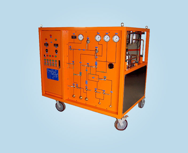 該裝置按照DL/T662-1999《六氟化硫充氣及回收裝置》標(biāo)準(zhǔn),裝置由回收系統(tǒng)、充氣系統(tǒng)、抽真空系統(tǒng)、凈化系統(tǒng)、氣體貯存系統(tǒng)組成。